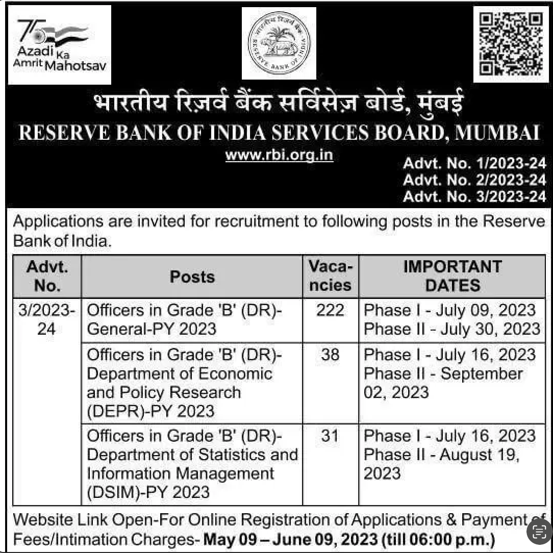 The RBI Grade B Notification 2023 is out on 26th April 2023 in newspapers. The detailed notification will be out on the official website of RBI on 9th May 2023. The RBI Grade B Notification 2023 is released for various posts including: